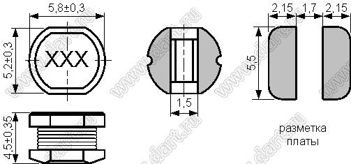 Габаритные размеры: 5,8x5,2x4,5 мм Диапазон температур C: -25...+85 °C |