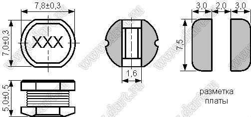 Габаритные размеры: 7,8x7,0x5,0 мм