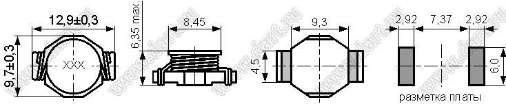 Каталог > Электронные компоненты, радиодетали > Дроссели > Дроссели неэкранированные для поверхностного (SMD) монтажа > CSH084S серия (12,9x9,7x6,35 мм)