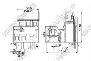 Клеммники винтовые, двухрядные, прямые, шаг 3,5 мм