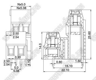 Клеммники винтовые, двухрядные, прямые, шаг 5,0 мм