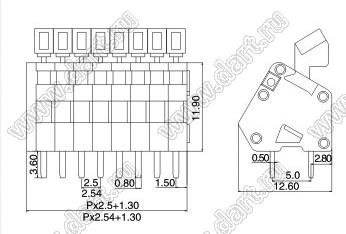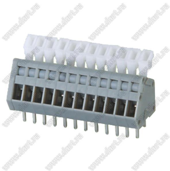 Клеммники нажимные, прямые, с входами проводов под углом 45 град, шаг 2,54 мм
