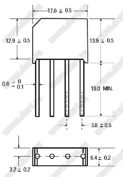 мосты диодные для выводного монтажа на плату в корпусе RS2 на ток до 2,0 A