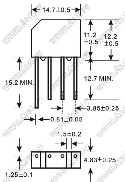 мосты диодные для выводного монтажа на плату в корпусе KBP на ток до 2,0 A