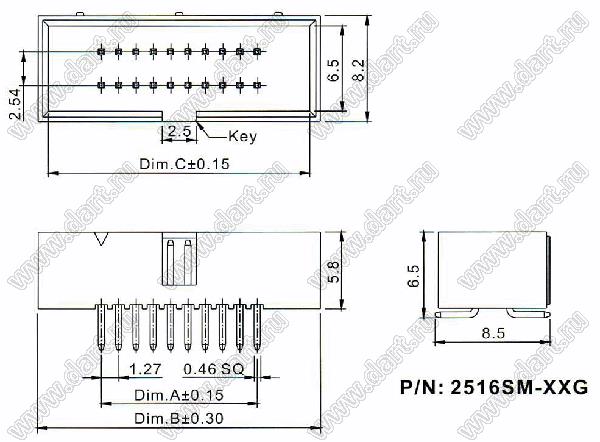 Каталог > Электронные компоненты, радиодетали > Разъёмы (соединители, переходники) > Разъемы IDC для плоского кабеля (шлейфа) > 1,27 x 2,54 > 2516SM-XXX (BH1.27x2.54-XXSMD) серия
