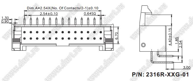 Каталог > Электронные компоненты, радиодетали > Разъёмы (соединители, переходники) > Разъемы IDC для плоского кабеля (шлейфа) > 2,54 x 2,54 > 2316R-XXG-01 серия