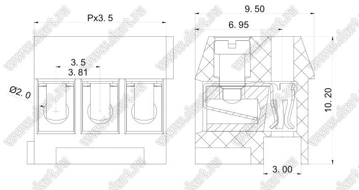Клеммники винтовые KF332K-3.5 серии, с шагом 3,50 мм предназначены для применения внутри электронной аппаратуры. Стандартные клеммники с винтовыми зажимами с шагом 3,50 мм паяют в отверстия печатной платы. Клеммники винтовые с шагом 3,50 мм обеспечивают быстрое подключение проводников, характеризуются высокой нагрузочной способностью. Конструкция винтовых клеммников KF332K-3.5 серии, с шагом 3,50 мм соответствует международным стандартам IEC60998, UL1059, UL486E, CSA C22.2 No.158. Условия поставки разъёмных клеммников серии уточняйте у наших менеджеров.