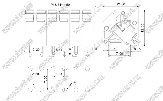 Клеммники нажимные, прямые, с входами проводов под углом, шаг 5,0 мм