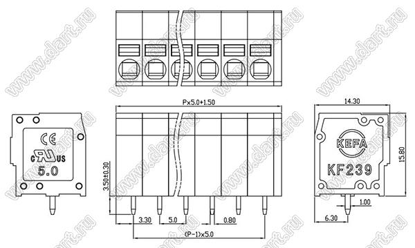 Клеммники нажимные KF239-5.0 серии с шагом 5.0 мм, прямые, предназначены для монтажа в отверстия печатних плат. Конструкция соответствует международным стандартам IEC60998, UL1059, UL486E, CSA C22.2 No.158. Условия поставки клеммников нажимных KF239-5.0 серии уточняйте у наших менеджеров.