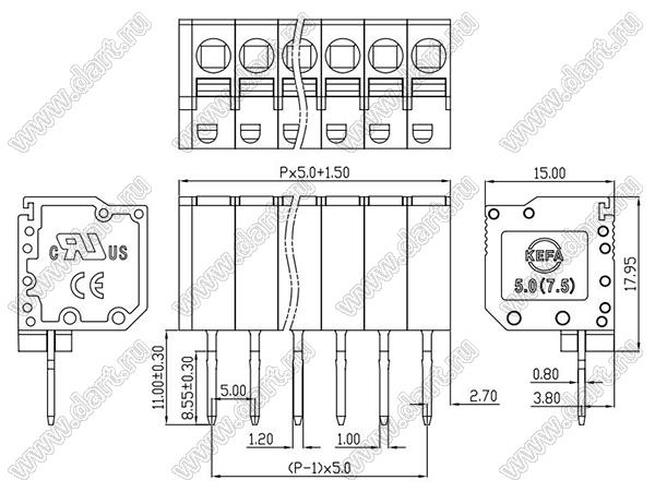 Клеммники нажимные KF450-5.0 серии с шагом 5.0 мм, прямые, предназначены для монтажа в отверстия печатних плат. Конструкция соответствует международным стандартам IEC60998, UL1059, UL486E, CSA C22.2 No.158. Условия поставки клеммников нажимных KF450-5.0 серии уточняйте у наших менеджеров.