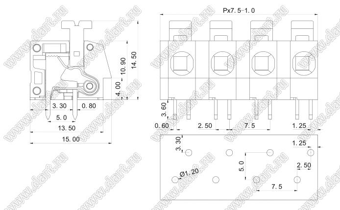 Клеммники нажимные KF202-7.5 серии с шагом 7.5 мм, прямые, предназначены для монтажа в отверстия печатних плат. Конструкция соответствует международным стандартам IEC60998, UL1059, UL486E, CSA C22.2 No.158. Условия поставки клеммников нажимных KF202-7.5 серии уточняйте у наших менеджеров.