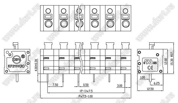 Клеммники нажимные KF211V-7.5 серии с шагом 7.5 мм, прямые, предназначены для монтажа в отверстия печатних плат. Конструкция соответствует международным стандартам IEC60998, UL1059, UL486E, CSA C22.2 No.158. Условия поставки клеммников нажимных KF211V-7.5 серии уточняйте у наших менеджеров.
