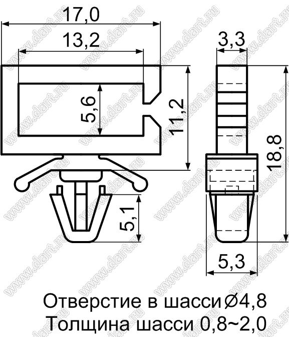 Материал: нейлон-66 (UL) Класс огнестойкости: 94V-2 Цвет: натуральный |