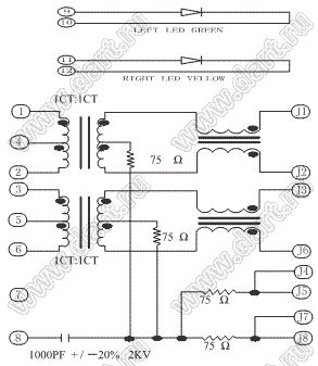 Два гнезда RJ-45 на плату с развязкой и фильтрами 8P8C