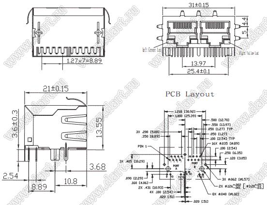 Каталог > Электронные компоненты, радиодетали > Разъёмы (соединители, переходники) > Разъемы RJ телекоммуникационные (телефонные, LAN, RJ-45) > SK02-211076SNL-SOCKETx2