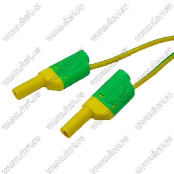 безопасный тестовый провод 25 см сечением 1,0 кв.мм с 4 мм наращиваемым штекером/гнездом BANANA на обоих концах; желто-зеленый