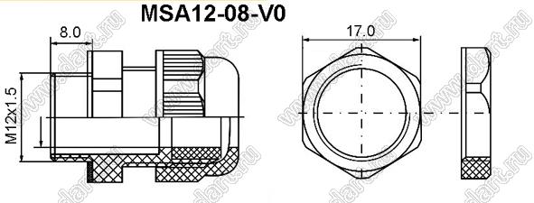 Каталог > Фурнитура для электронных устройств > Кабельные вводы (изоляторы проходные) резьбовые > Металлические кабельные вводы > Стальные кабельные вводы, огнестойкие V0 > MSA12-08-V0