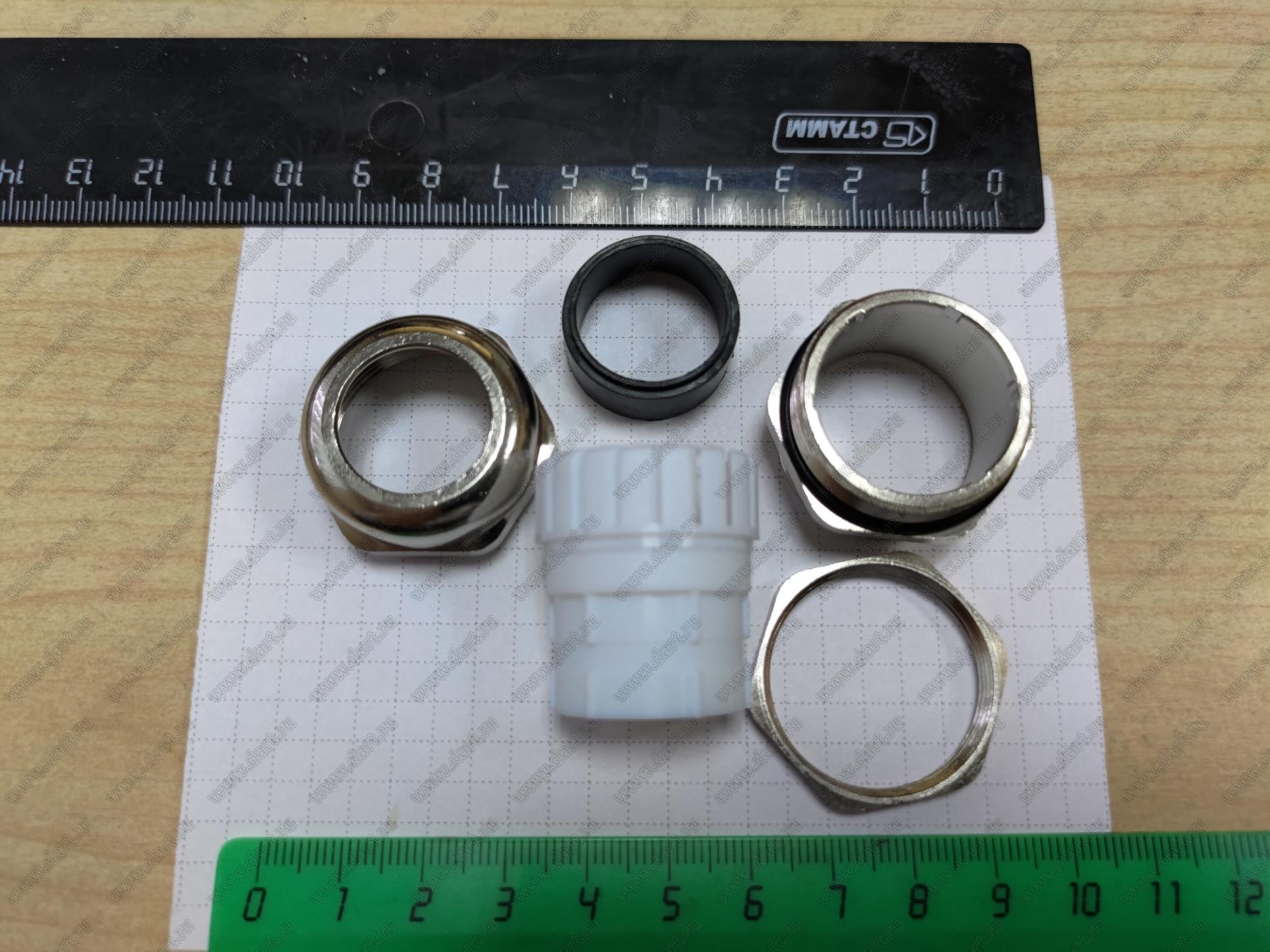 Каталог > Фурнитура для электронных устройств > Кабельные вводы (изоляторы проходные) резьбовые > Металлические кабельные вводы > Латунные кабельные вводы (резьба PG) > PBA21-18