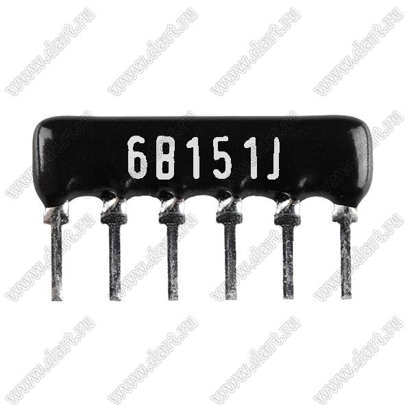 Каталог > Электронные компоненты, радиодетали > Резисторы > Резисторы постоянные > Резисторы DIP (выводные) > Резисторы SIP (сборки резисторные) > Тип B сборки резисторные > схема 6P3R > SIP 6P3R-B150RJ 5% (6B151J)