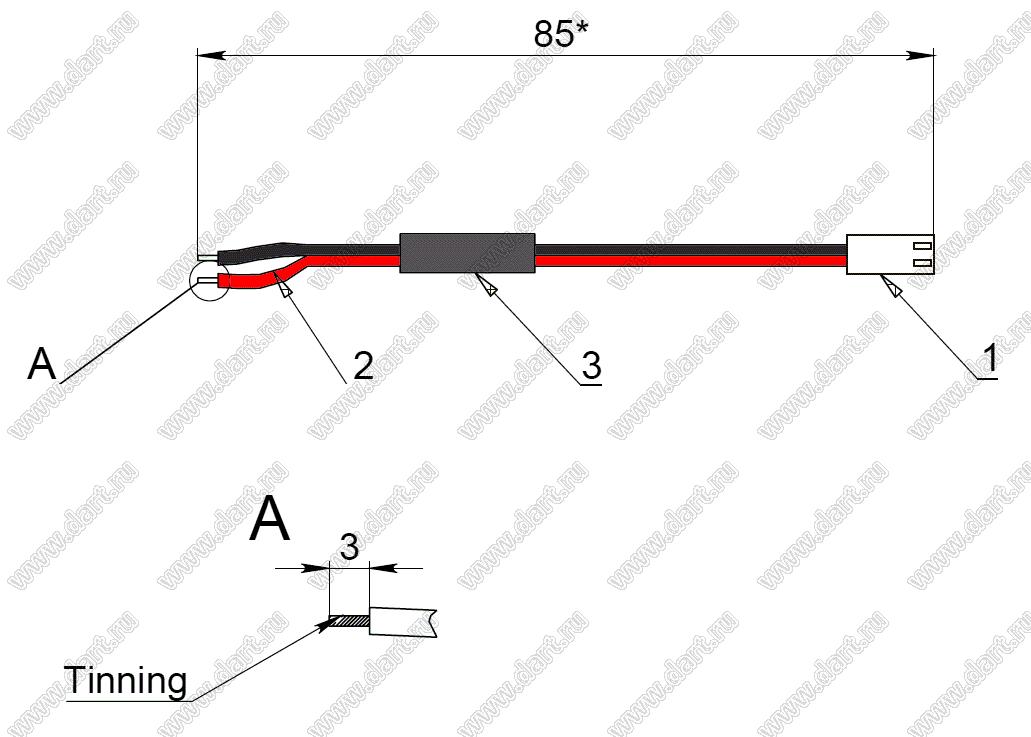 жгут проводов 85 мм с разъемом A2510-02Y (2218H-02, HU-2); L=85мм