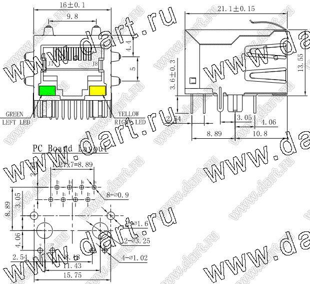Каталог > Электронные компоненты, радиодетали > Разъёмы (соединители, переходники) > Разъемы RJ телекоммуникационные (телефонные, LAN, RJ-45) > SK02-111015NL (ZPY-4109DHLF)-SOCKET