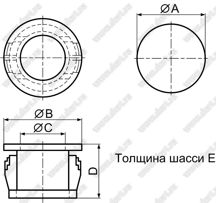 Втулка проходная под кабель; C=19,4мм; нейлон-66 (UL); цвет черный