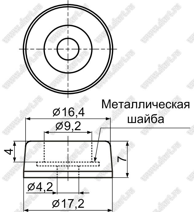 Ножка приборная с металлической шайбой, под винт M4; 16,4x7,0мм; силиконовая резина (UL); черный