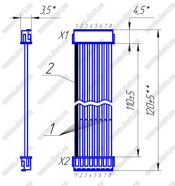 Каталог > Заказные изделия > Кабели под заказ > ТЦВА.685621.001 P=1.5mm (8P+8P)