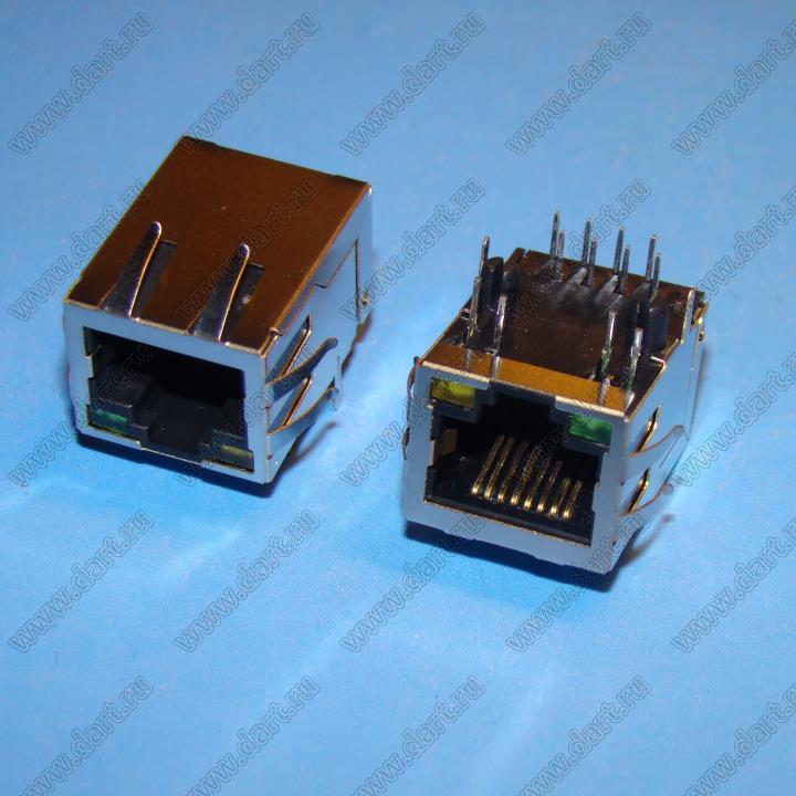 Гнездо RJ-45 8P8C на плату с развязкой, фильтрами и светодиодами