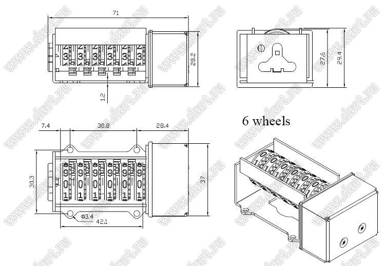 Каталог > Электронные компоненты, радиодетали > Счетчики механические (Счетные механизмы для счетчиков электроэнергии) > LHAD6H-04RT