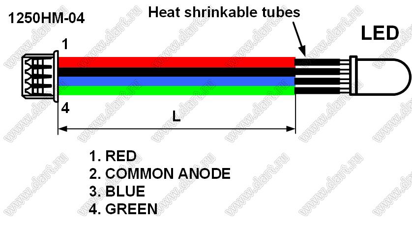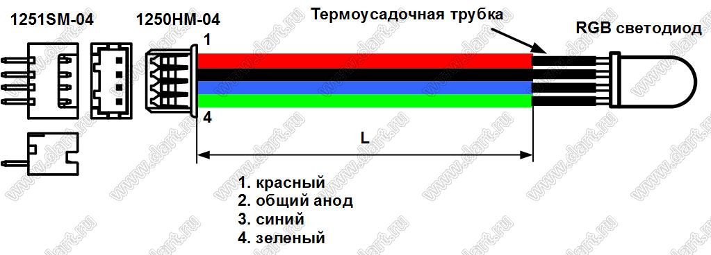 Сборка кабельная с разъёмом 1250HM-04 (длина проводов 300 мм) и светодиодом 5RGB9SCA (ОА) для потолка "Звездное небо"