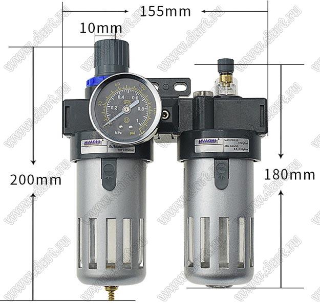 двухкомпонентный водомасляный сепаратор и фильтр для регулирования давления без разъема улучшенный; 0,01...0,8Mpa; 3/8дюйм