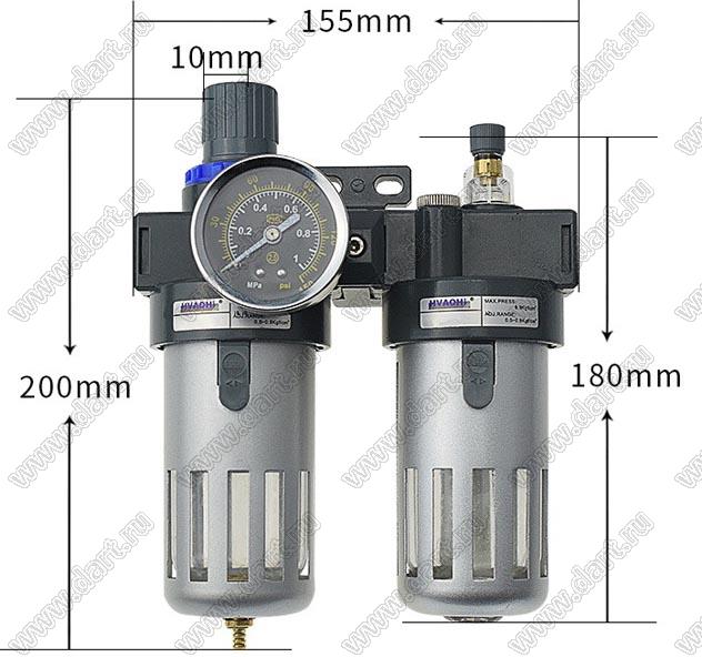 двухкомпонентный водомасляный сепаратор и фильтр для регулирования давления без разъема улучшенный; 0,01...0,8Mpa; 1/2дюйм