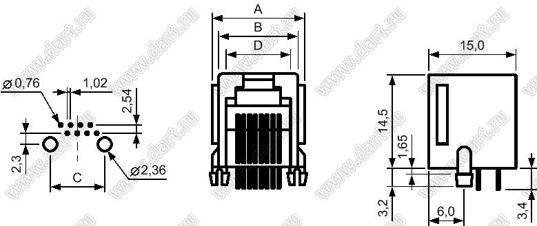 Каталог > Электронные компоненты, радиодетали > Разъёмы (соединители, переходники) > Разъемы RJ телекоммуникационные (телефонные, LAN, RJ-45) > 7002-4P4C (TJ3A-4P4C)-SOCKET
