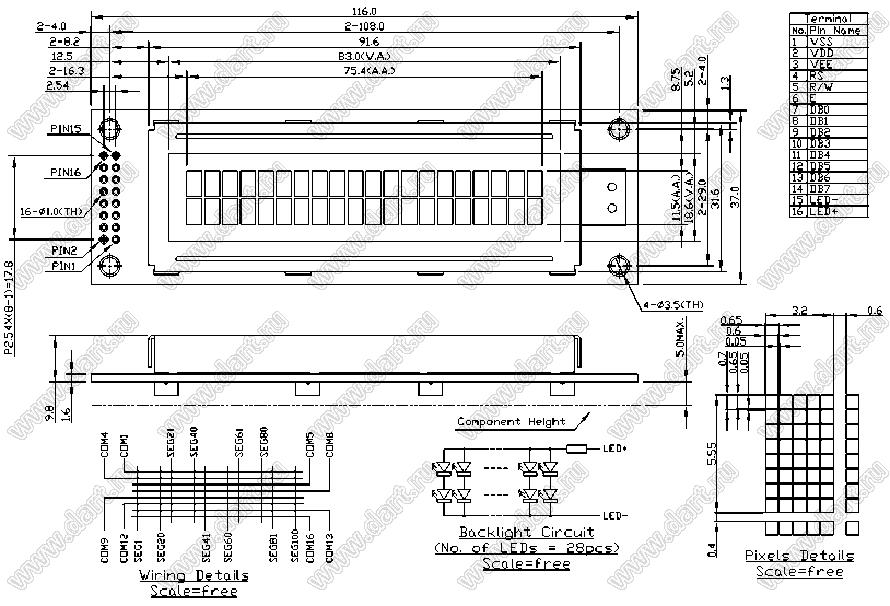 модуль жидкокристаллический символьный 116,0 x 37,0 x 15,0мм
