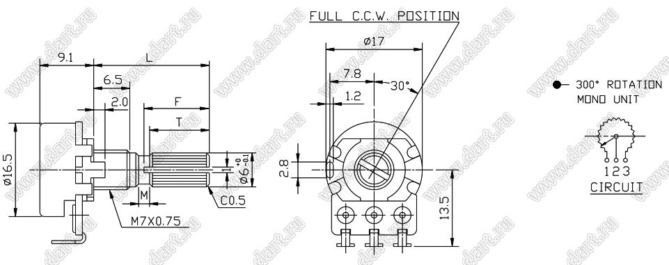 Каталог > Приборы, инструмент, оборудование, материалы > Головки измерительные > Потенциометры > RV16AF-10-15K-C100K-3