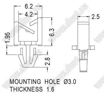 Каталог > Фурнитура для электронных устройств > Крепеж проводов и кабелей > Зажимы проводов с фиксацией в панель на защелках > MWS серия > MWS-58