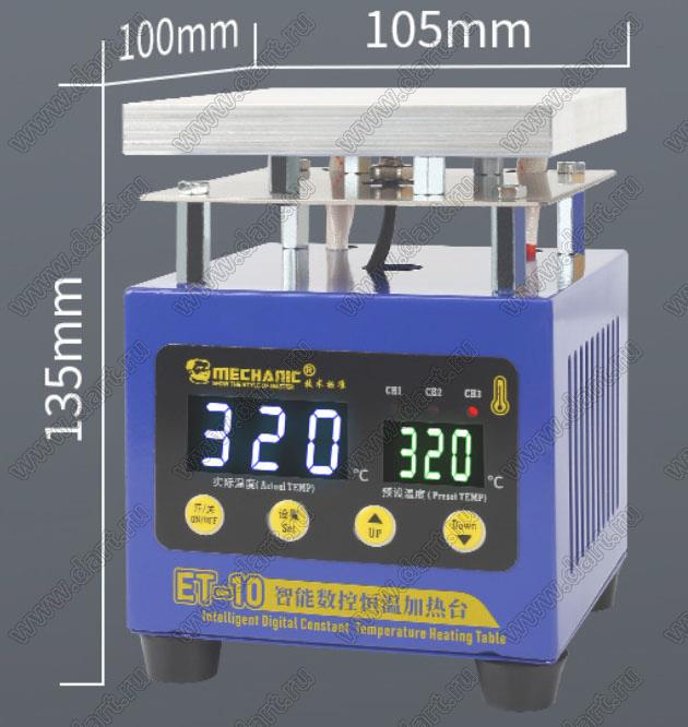 нагревательный стол для монтажа плат; 220V AC 50/60Hz; P=260Вт; Tраб.=10-320°C; габариты 100x105x135мм; размер стола 100x105мм