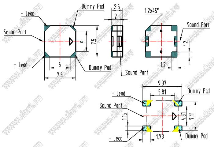Каталог > Электронные компоненты, радиодетали > Излучатели звука > Излучатели звука - Электромагнитные гудки для поверхностного монтажа > BLXH-SMD7525