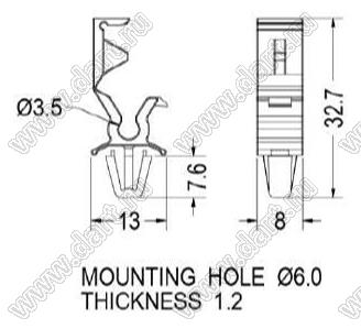 Каталог > Фурнитура для электронных устройств > Крепеж проводов и кабелей > Зажимы проводов с фиксацией в панель на защелках > THV серия > THV-17