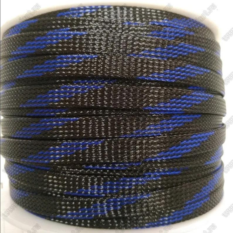 Оплетка "змеиная кожа" огнестойкая; 16,0/35; черная с синей нитью; полиэтилентерефталат