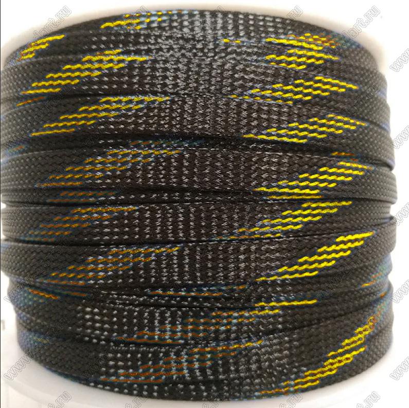 Оплетка "змеиная кожа" огнестойкая; 4,0/10; черная с желтой нитью; полиэтилентерефталат