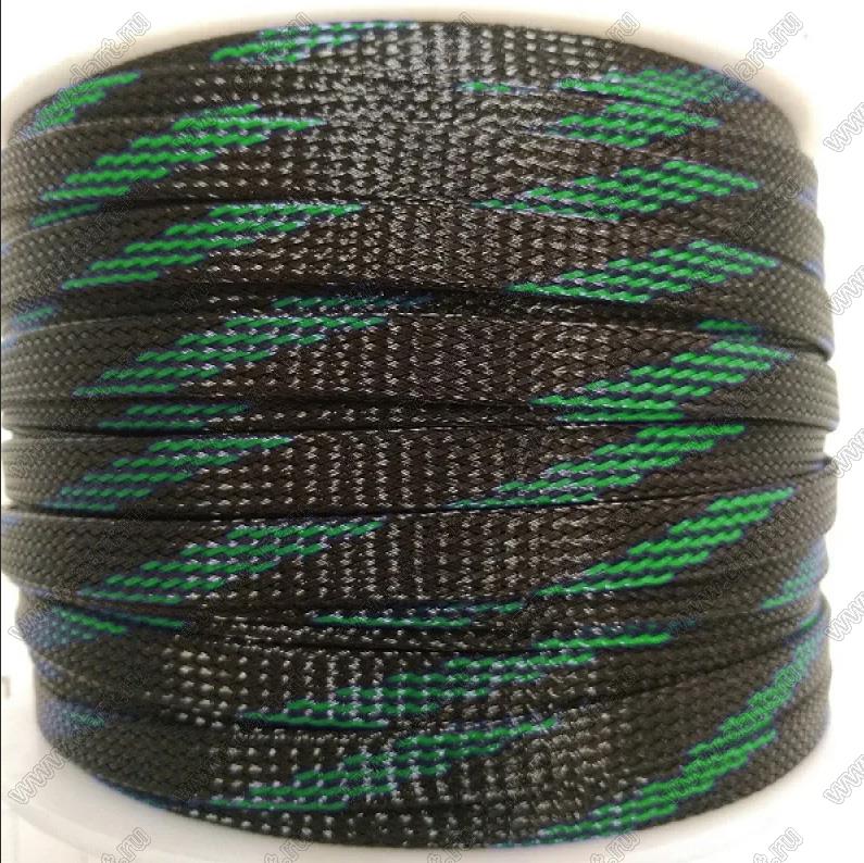 Оплетка "змеиная кожа" огнестойкая; 30,0/75; черная с зеленой нитью; полиэтилентерефталат