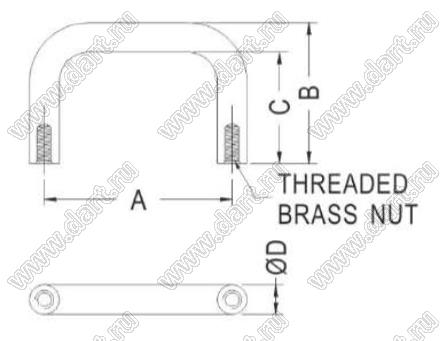HANU-128 ручка приборная; A=25,0мм; B=28,5мм; C=22,2мм; D=6,3мм; E=M3X0,5P; пластик