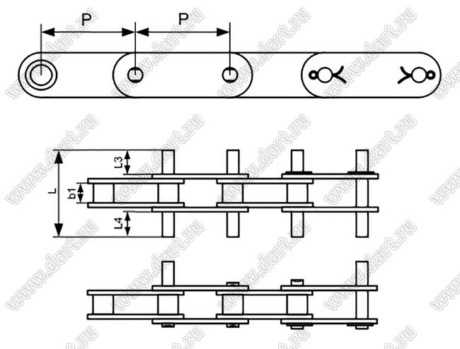 цепь приводная; P=63,50мм; L=35+X+Yмм