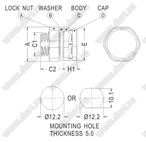 Материал: A=Nylon-66(UL), B=EPDM, C,D=PC(UL)