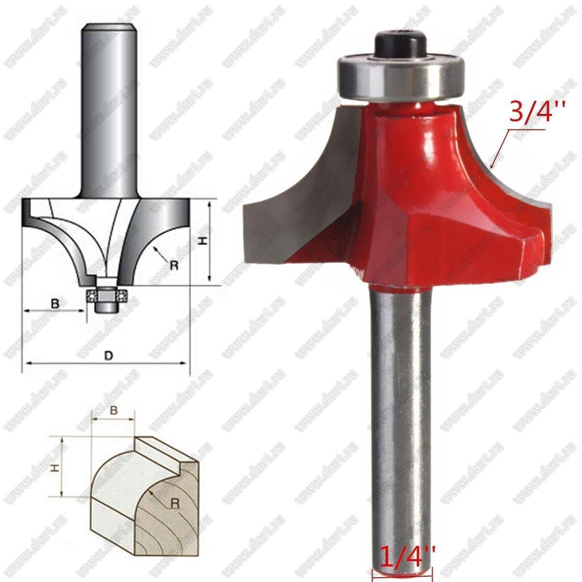Фреза по дереву для скругления углов; типоразмер 1/4x3/16; D=13,76мм; R=2,38мм; B=2,38мм; H=5,38мм