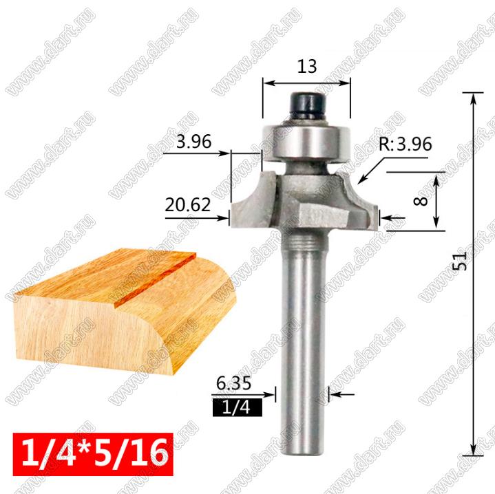Фреза по дереву для скругления углов; типоразмер 1/4x5/16; D=20,94мм; R=3,97мм; B=3,97мм; H=8,00мм