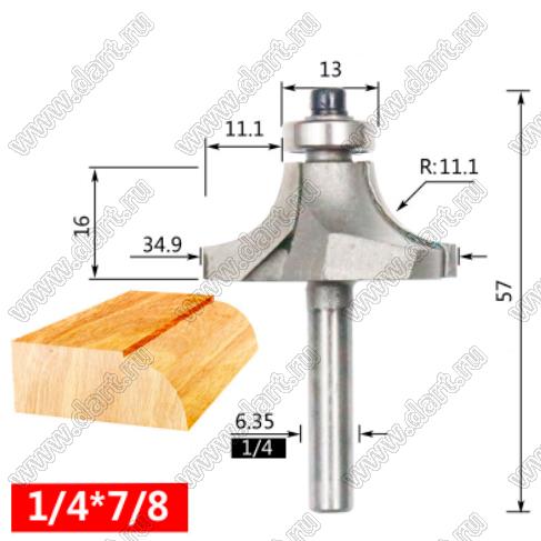 Фреза по дереву для скругления углов; типоразмер 1/4 x 7/8; D=35,20мм; R=11,10мм; B=11,10мм; H=16,00мм