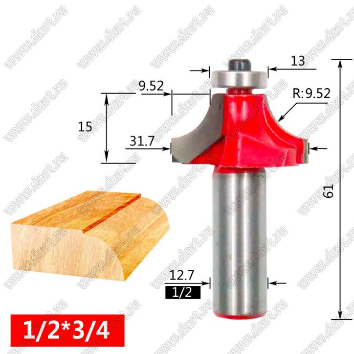 Фреза по дереву для скругления углов; типоразмер 1/2 x 3/4; D=32,05мм; R=9,52мм; B=9,52мм; H=15,00мм